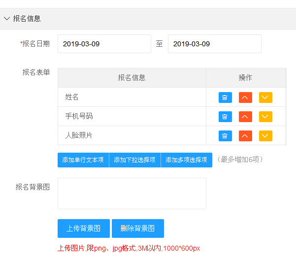 4.基础信息填写好后。进入报名表,报名表您可以根据您的会议要求自由设置。