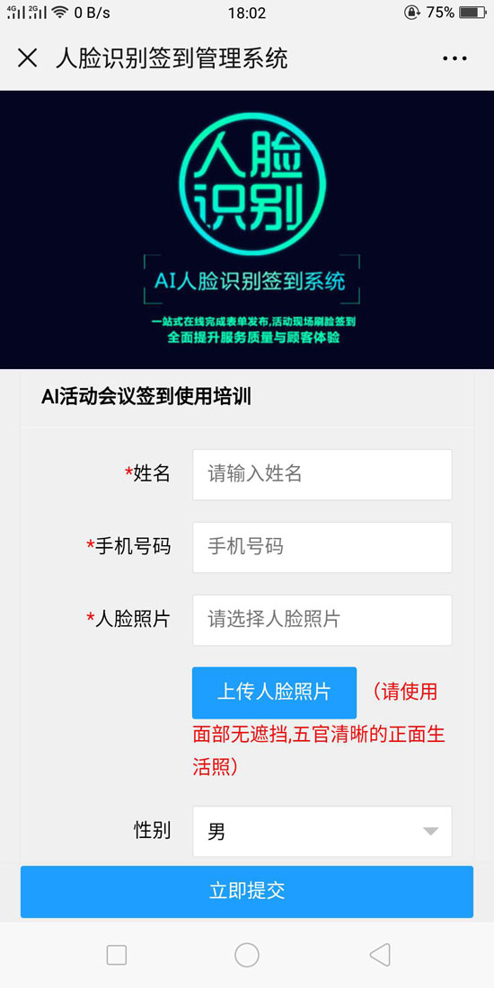 1.登陆人脸识别签到系统后台http://ai.03-51.com/